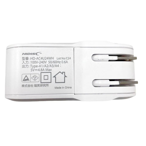 HIDISC 4台同時に充電できるUSB充電器 USB-A x4 ポート