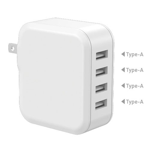 家庭用コンセントから4台まとめて充電可能!USBポートが4つ搭載されており、スマホやタブレットに幅広く対応します。デスク周りの配線を減らし、効率よく充電できる一台です。