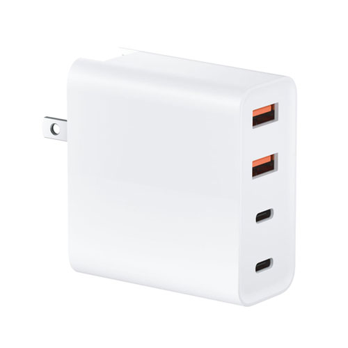 家庭用コンセントから4台まとめて充電可能!USB×2,Type-C×2ポート搭載で、スマホやタブレットに幅広く対応します。デスク周りの配線を減らし、効率よく充電できる一台です。