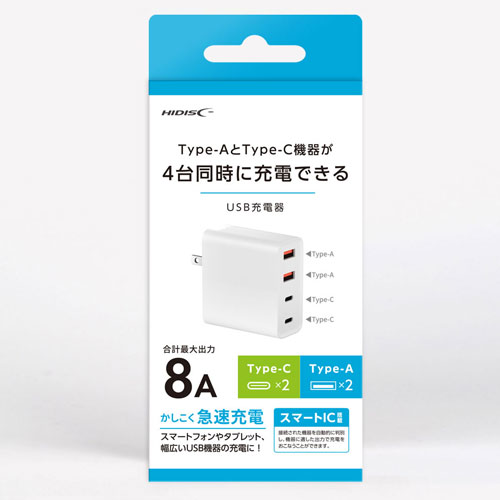 HIDISC Type-AとType-C機器が4台同時に充電できるUSB充電器