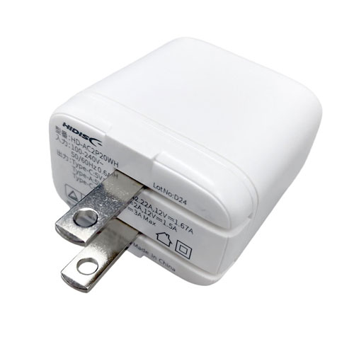 HIDISC 2台同時に急速充電できるUSB充電器 USB-C x1 Ax1 ポート