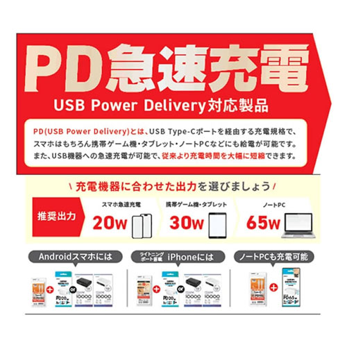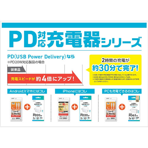 タブレットやノートPCも2台同時に充電できる、PD20W対応のType-CとType-Aの2ポート充電器。高出力で素早くチャージ。スマホの急速充電はもちろん、PC利用にも安心のパワーです。