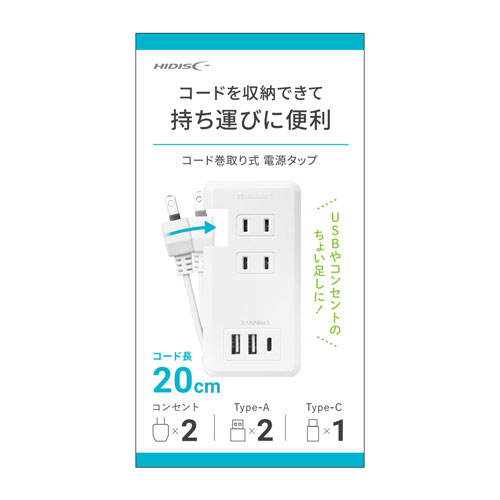 HIDISC コードを収納できて持ち運びに便利 コード巻取り式 電源タップ