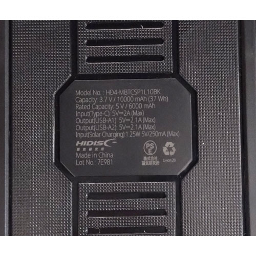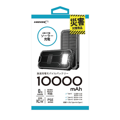 HIDISC ソーラーパネル1面搭載モバイルバッテリー