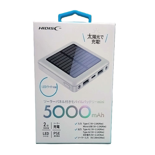 HIDISC ソーラーパネル付きモバイルバッテリーmini