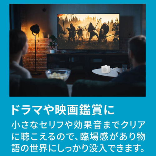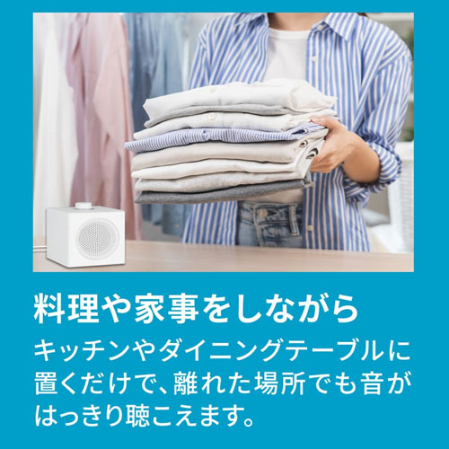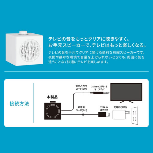 5メートルのロングケーブルで、テレビの音を耳元でクリアに聞ける有線スピーカーです。キッチンやソファなど、どこにいてもハッキリと音をキャッチ。手元で操作できる便利な設計。