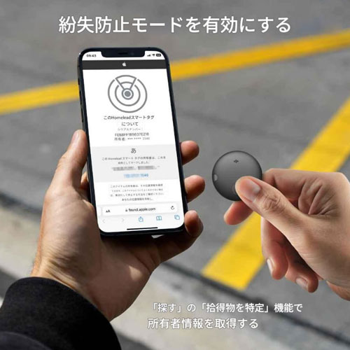 鍵や財布に付けて紛失を防ぎ、ペットやお子様を見守るための便利なiPhone・iPad用小型タグ。万が一の時もスマホから居場所をすぐに確認。様々なものに取り付け可能なコンパクト設計。