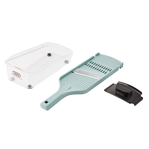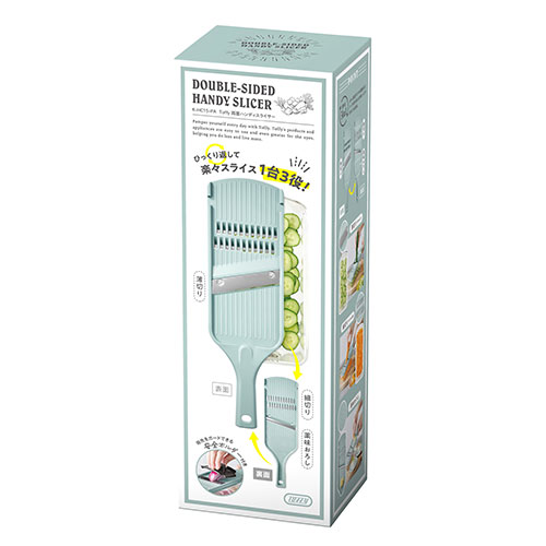 素材 本体・安全ホルダー/ABS樹脂、容器/ポリスチレン、容器すべり止め/ポリプロピレン・熱可塑性エラストマー、刃/ステンレス鋼サイズ 約W100×H90×D315mm(安全ホルダー含まず)容量 480mL(容器)機能 表面で薄切り、裏面で細切り&薬味おろしができる1台3役のハンディスライサー付属品 安全ホルダー、ユーザーズガイド