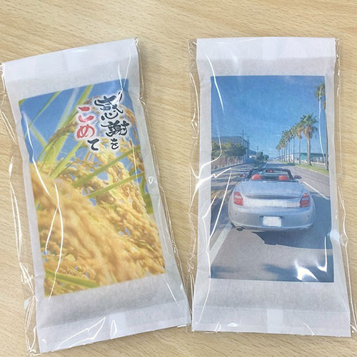 オリジナルパッケージで製作可能な、 2合サイズの国産ブレンド米(国内産100%)です。ノベルティや贈答品として、幅広いシーンでご利用いただける高品位な米ギフトです。