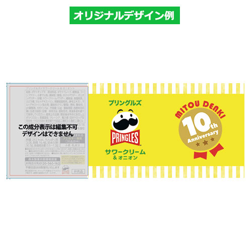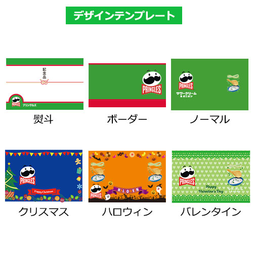 特徴的な筒型缶と、ひげのキャラクター「Mr. P」がトレードマーク!パリッとした食感で人気のポテトチップス「プリングルズ」を、オリジナルパッケージでお作りします。