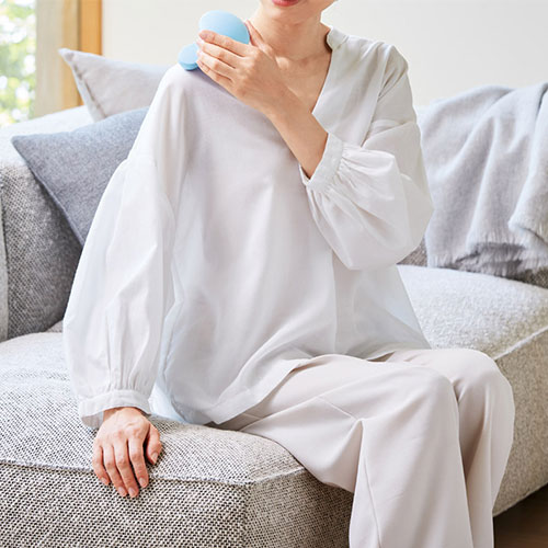 肩や腕にフィットする形状で使い心地抜群。中央の円形スイッチで好みの強さに細かく調整できます。体に寄り添うデザインで、自分にぴったりの心地よい刺激を手軽に楽しめます。