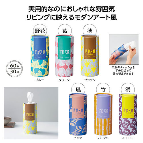 京都の伝統「伊砂文様」が彩る和柄ボトルティッシュ。ディスプレイ映えする6柄セットで華やかに演出します。市販のティッシュを詰め替えて繰り返し使える、実用的で美しいアイテムです。