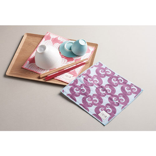 京都の伝統「伊砂文様」を施した、かや織りふきんです。8枚重ねの丈夫な生地は、使うほどに柔らかく手になじみます。歴史ある美しい和柄を楽しみながら、長く愛用できる実力派の逸品です。
