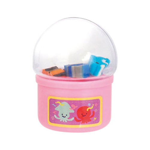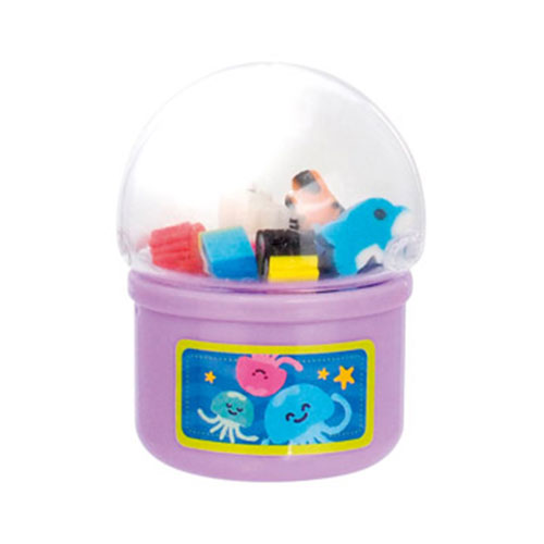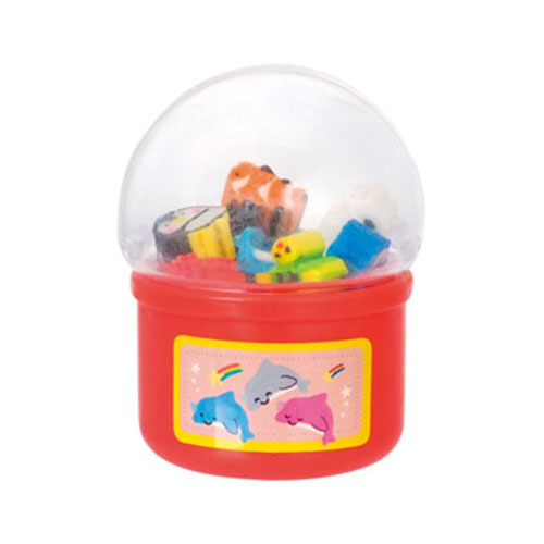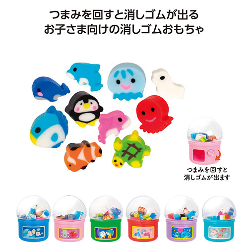 つまみを回すと、カプセルマシンから海の生き物のミニ消しゴムが飛び出します!遊び心満載のギミックと可愛らしいデザインが魅力。お子様へのギフトや景品に最適な商品です。