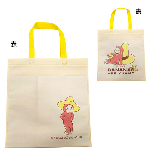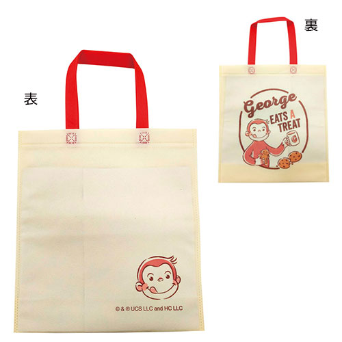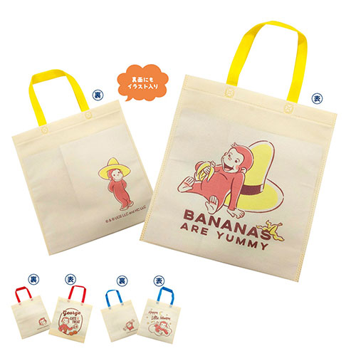 かわいらしい「おさるのジョージ」をプリントした不織布トートバッグ。裏面にもお洒落なワンポイント入りです。軽くて使いやすく、両面楽しめるデザインが魅力の一品です。