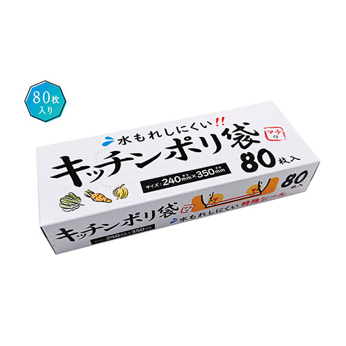 水もれしにくい! キッチンポリ袋マチ付80枚入