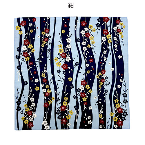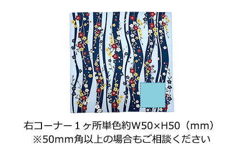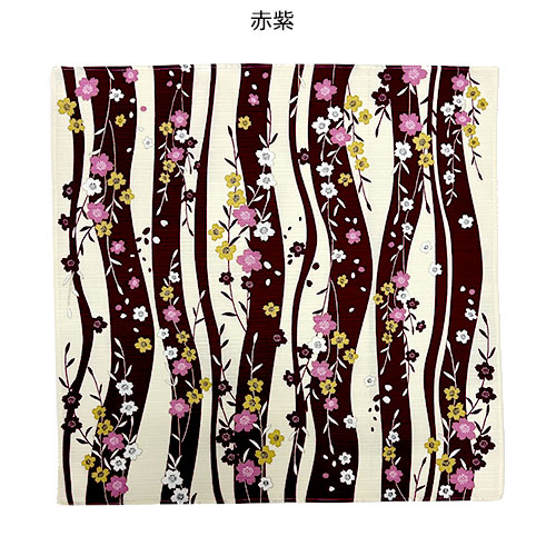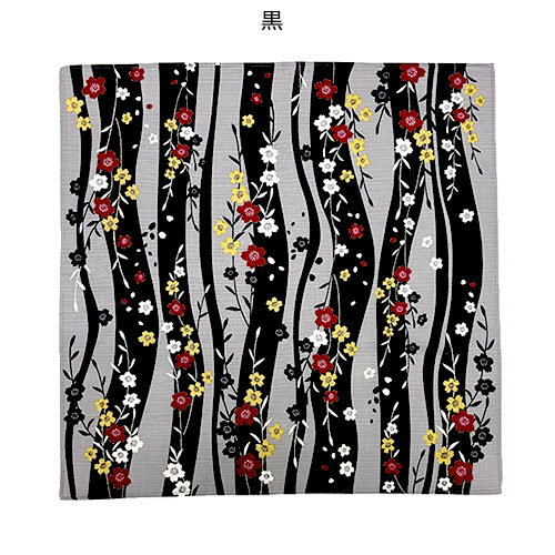 桜をモチーフに和な雰囲気で上品でデザインされた、約50×50cmサイズのシャンタン小風呂敷です。カラーバリエーションは赤桜、紺、黒の全3色展開です。ノベルティ用等におすすめ。