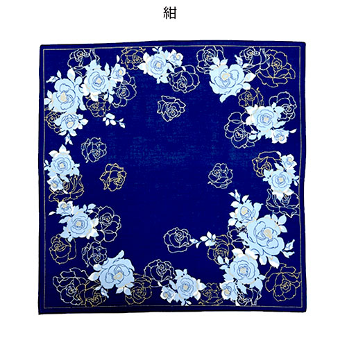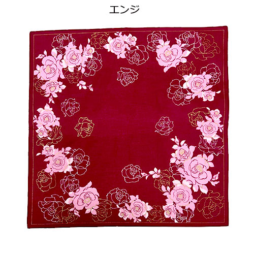 バラをモチーフにしたエレガントなブリントハンカチ。44×44cmのサイズは、小さめのバッグにも収まりやすく毎日のエチケットに最適。オンオフ問わず幅広く活躍します。