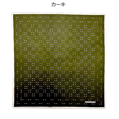 ブルーやカーキの深い色合いに、細かな幾何学模様が映える都会的なハンカチ。折り畳んでも嵩張らず、ビジネスバッグやポケットにスマートに収まります。さりげないお洒落を楽しみたい大人に。