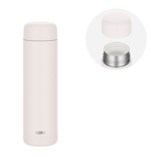 カラー展開 全3色素材 内びん/ステンレス鋼(セラミック塗膜加工) 胴部/ステンレス鋼(アクリル樹脂塗装) フタ/ポリプロピレン(発泡ポリプロピレン内蔵) パッキン/シリコーンゴムサイズ 口径49×幅70×奥行70×高240mm容量 650ml重量 300g機能 保温効力/69℃以上(6時間) 保冷効力/9℃以下(6時間)