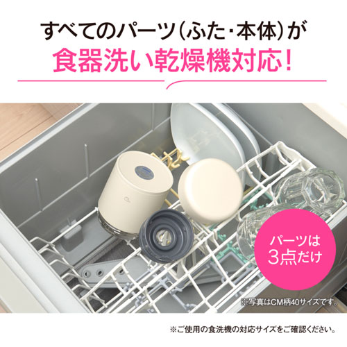 400mlスープジャー。象印独自の「サーモリング構造」で保温力が向上し、温かさが持続。パッキン一体型の「シームレスせん」に加え、全パーツ食洗機対応でお手入れも劇的に進化しました。