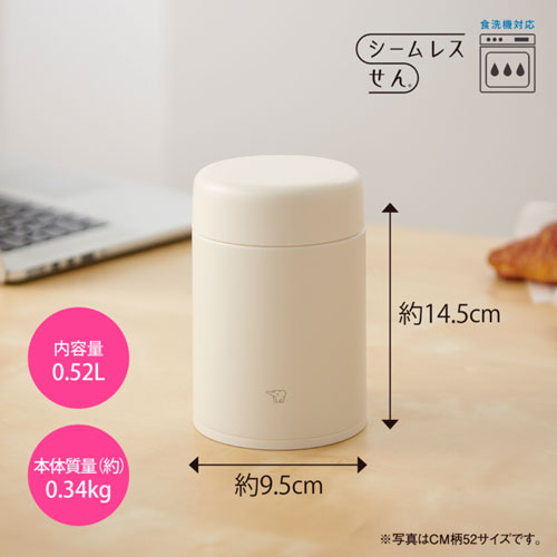 520mlスープジャー。象印独自の「サーモリング構造」で保温力が向上し、温かさが持続。パッキン一体型の「シームレスせん」に加え、全パーツ食洗機対応でお手入れも劇的に進化しました。