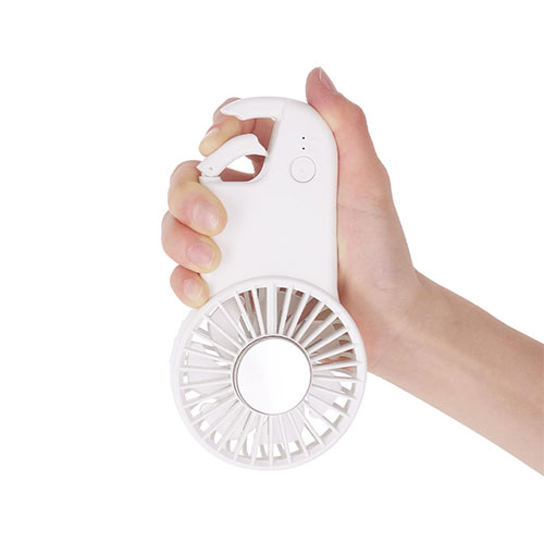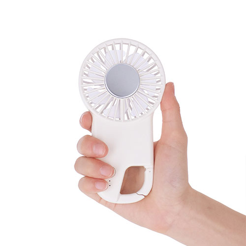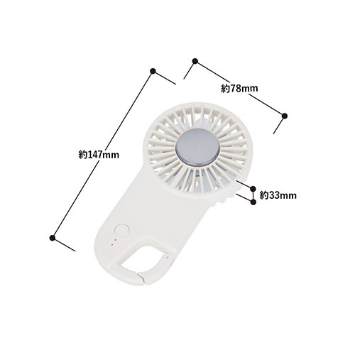 冷却プレートで首元を直接冷やせる、ペルチェ素子採用のUSB扇風機。薄型かつカラビナ付きで携帯性も抜群です。3段階の風量調節が可能で、高級ノベルティや購入特典に最適。