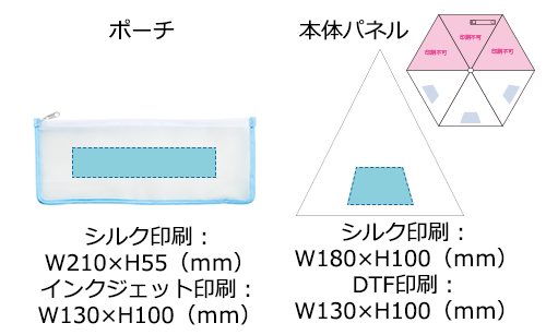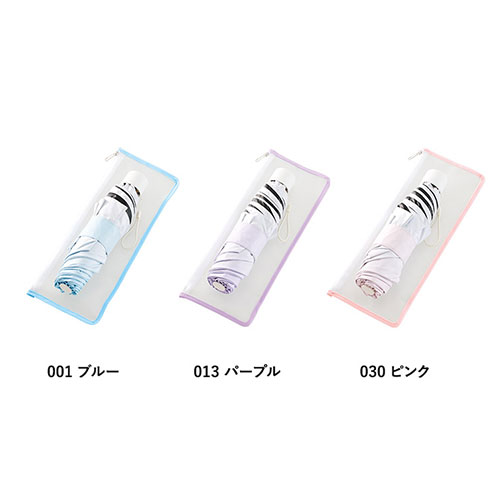グラデーションが目を引く遮光100%の折りたたみ傘。名入れが映える白地パネルと、統一感のあるEVAポーチが魅力です。傘とポーチの両方にフルカラー印刷が可能で物販等に最適です。