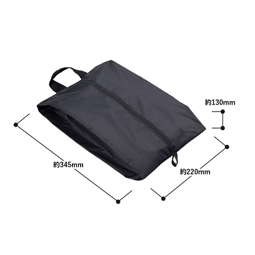 持ち運びに便利な折り畳みシューズケース。内側のPVCコーティングで汚れもサッと拭き取れます。ゴム留めでコンパクトに収納でき、スポーツチームのグッズやジムの入会特典に最適。
