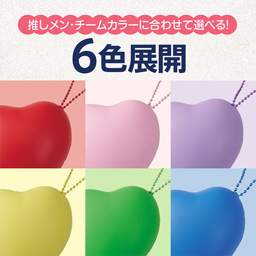 6色展開のハート型サインボール。柔らかい素材でストレス解消にも使え、投げても安心な吊り下げ穴付き。サインやロゴ印刷が可能で、スポーツ観戦、推し活グッズなど幅広く活躍可能です。