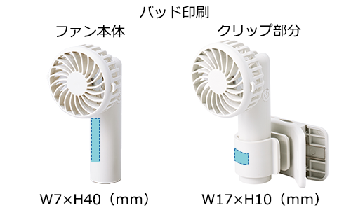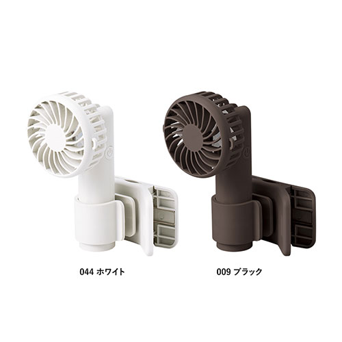 日傘やバッグに固定できるクリップ付きハンディファン。手ぶらで涼めるほか、卓上でも使える3WAY仕様です。風量は3段階、ファンの角度変更も可能。持ち手とクリップに名入れが可能です。