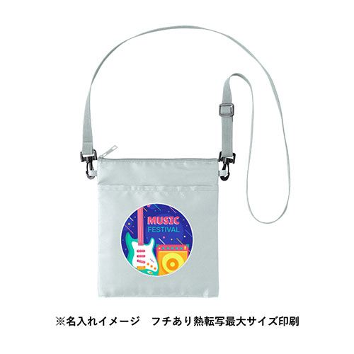 500mlペットボトルが2本入る、保冷機能付きサコッシュ。フラットなアルミシート採用でごわつかず、普段使いも快適です。小物ポケット付きで、フルカラー名入れも可能。