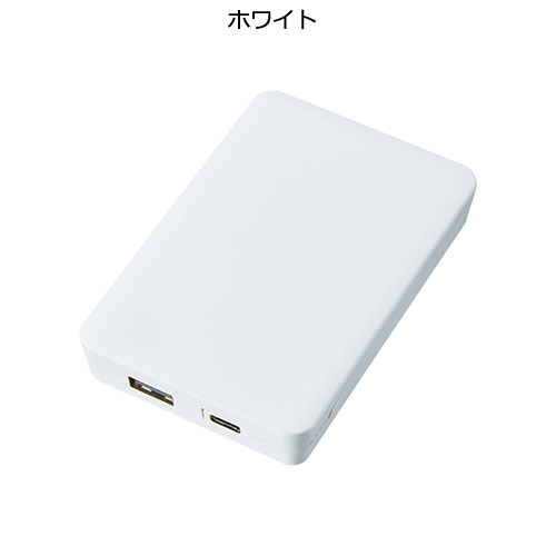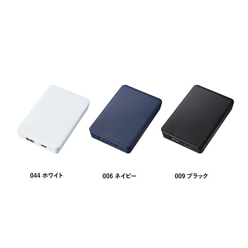 カラー展開 全3色素材 ABS 他サイズ W63×H95×D15(mm)重量 102g機能 最大出力2.1A バッテリー容量4000mAh付属品 取説付、Type-Cケーブル付属、残量表示ランプ付包装 エアパッキン、紙箱