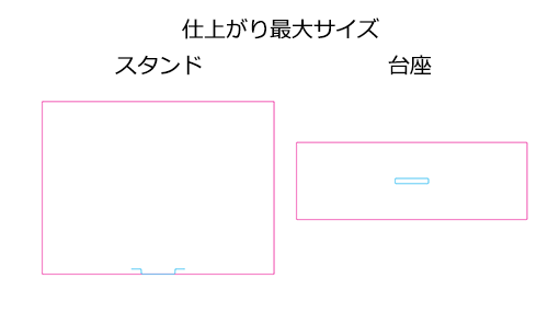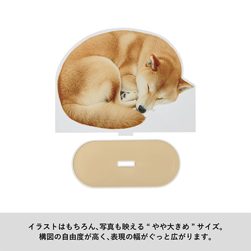 134×100mmサイズの、キャラクターやロゴに合ったフルカラー印刷+カットで作れるアクリルスタンドワイドです。アーティストやアニメのオリジナルグッズとして人気のアイテムです。