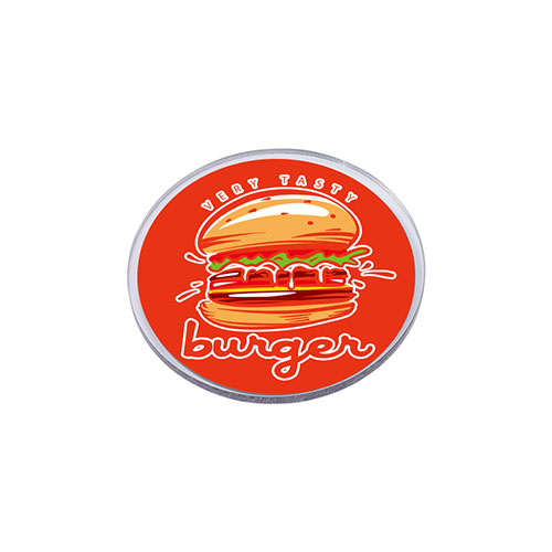 フルカラー印刷で自由なデザインが楽しめる、アクリル素材のラウンド型マグネット。お土産や記念品の定番として人気が高く、アクリルならではの透明感と発色の良さが特徴です。