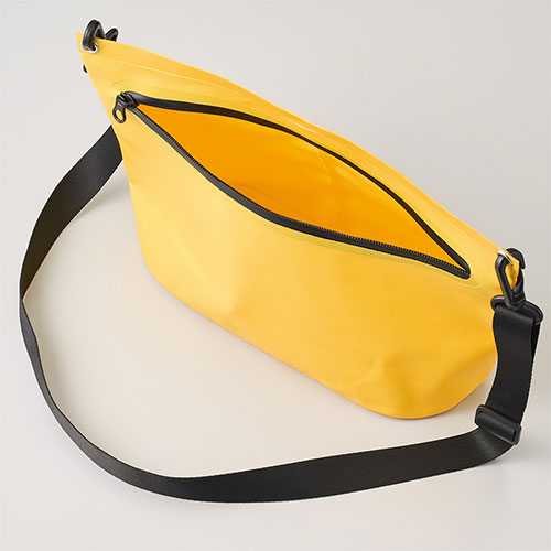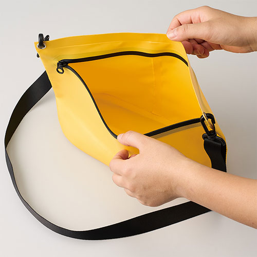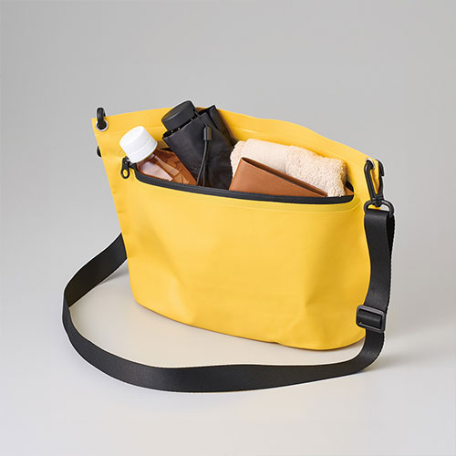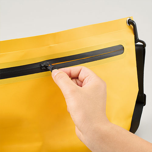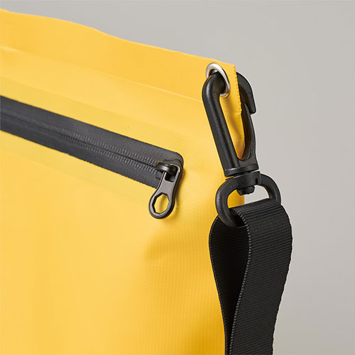 水に強く汚れもサッと拭き取れる、丈夫なターポリン素材のショルダーバッグ。ファスナー付きで中身の飛び出しを防ぎアクティブなシーンでも安心して使えます。名入れが映える4色のカラー展開。