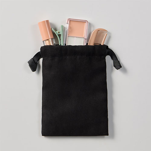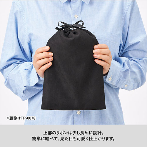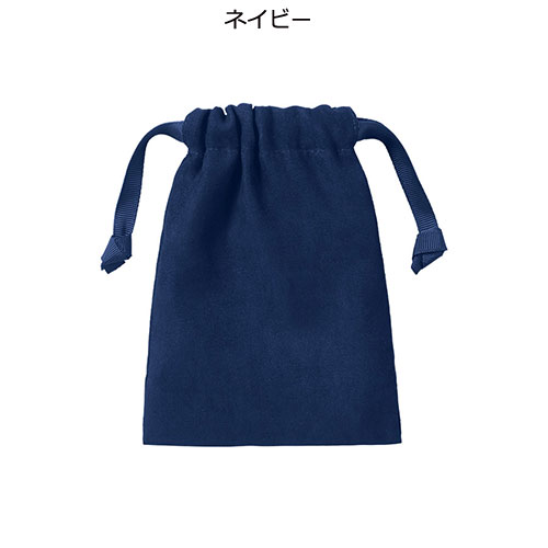 しっとりとした手触りと上品な光沢が魅力の、Sサイズのスウェード調巾着。長めのリボンで華やかなリボン結びができ、ギフトの特別感を一層引き立てます。秋冬ノベルティに最適。