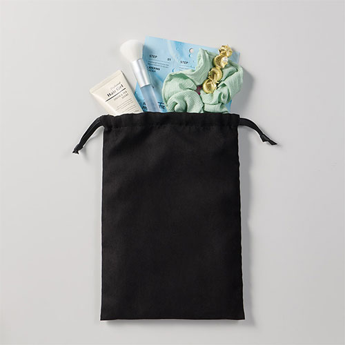 しっとりとした手触りと上品な光沢が魅力の、Mサイズのスウェード調巾着。長めのリボンで華やかなリボン結びができ、ギフトの特別感を一層引き立てます。秋冬ノベルティに最適。