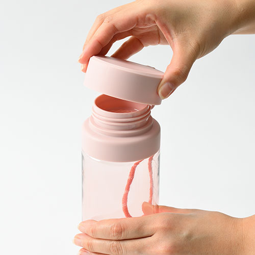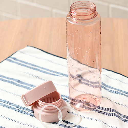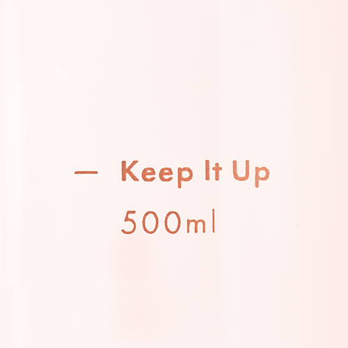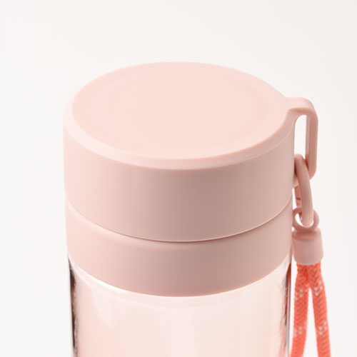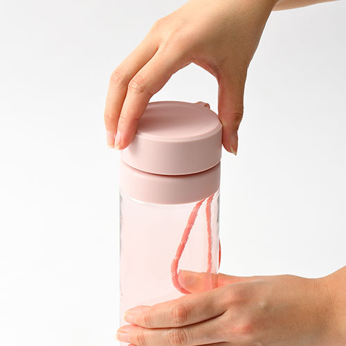 大容量760mlのプラスチックボトル。目盛りには心和むメッセージが添えられ、飲むたび気分が軽やかに。ストラップ付きで持ち歩きやすく、日々の水分補給を楽しく彩ります。