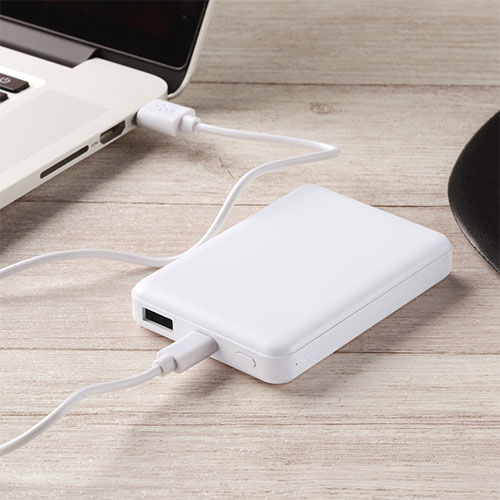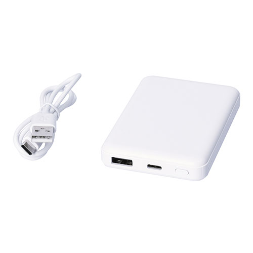 素材 リサイクルABSサイズ 90×63×15mm機能 電源/USB 準固体電池使用 電池容量/5000mAh 定格容量/3400mAh DC INPUT5V/2.1A DC OUTPUT5V/2.4A付属品 充電ケーブル付(Type-C)包装 箱入