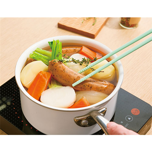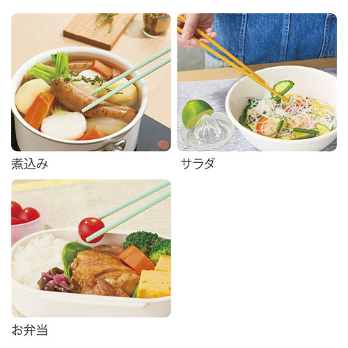 キッチンを彩る、滑りにくく掴みやすいシリコン菜箸。調理や盛り付けに重宝します。海外ブランド風のスタイリッシュなパッケージ入りで、ギフトや景品にも最適な一品です。