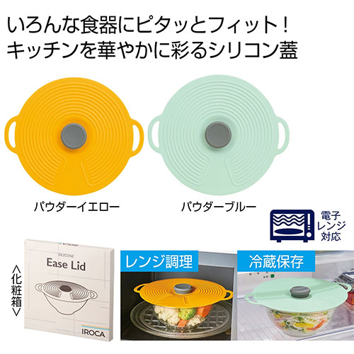 キッチンを彩る、レンジ調理や保存に便利なシリコンリッドです。海外ブランド風のスタイリッシュなパッケージ入りで、ギフトや景品、ノベルティアイテムにも最適な一品です。