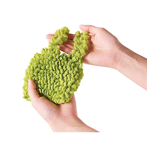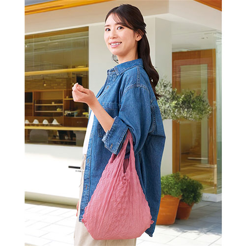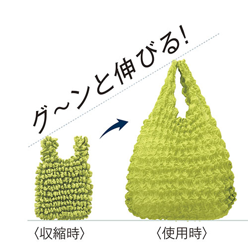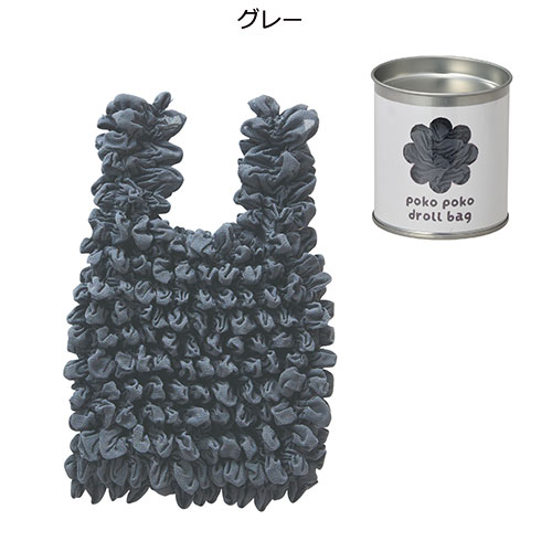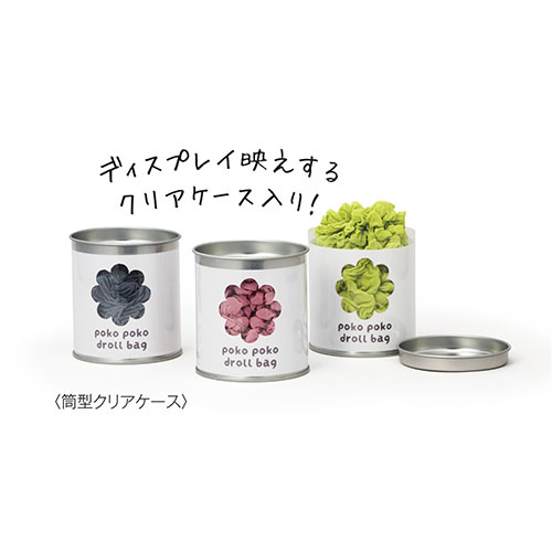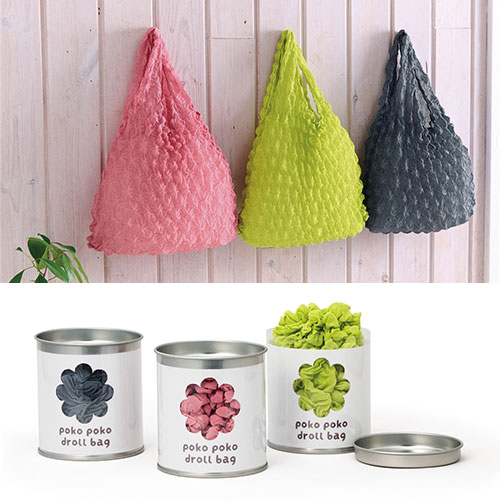 ぽこぽこした見た目が可愛いバッグ。コンパクトですが、物を入れるとびよーんと伸びてたっぷり入ります。華やかなカラーとクリアケース入りで、ギフトや景品にも最適です。