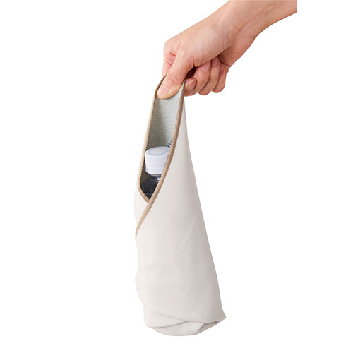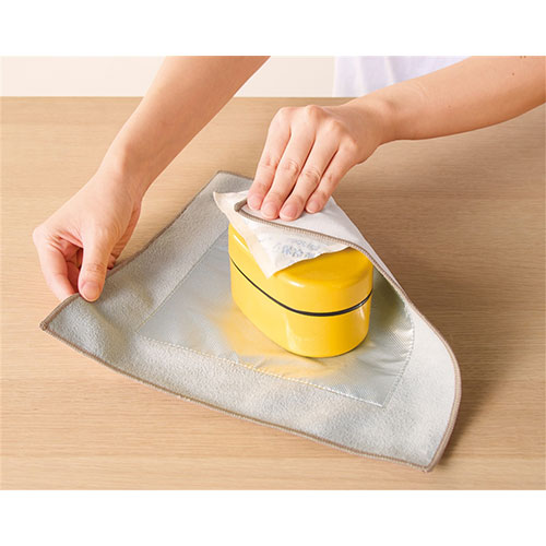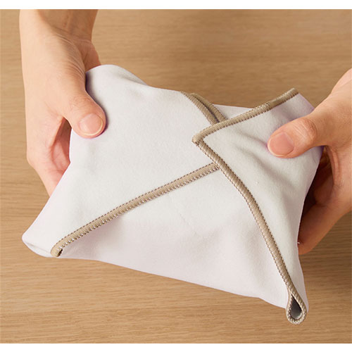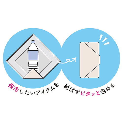 巻くだけで生地同士がピタッとくっつく不思議なクロス。包むだけで中身をしっかり保護し、お弁当や小物の整理に重宝します。販促に便利な名刺ポケット付きの袋入りもポイントです。