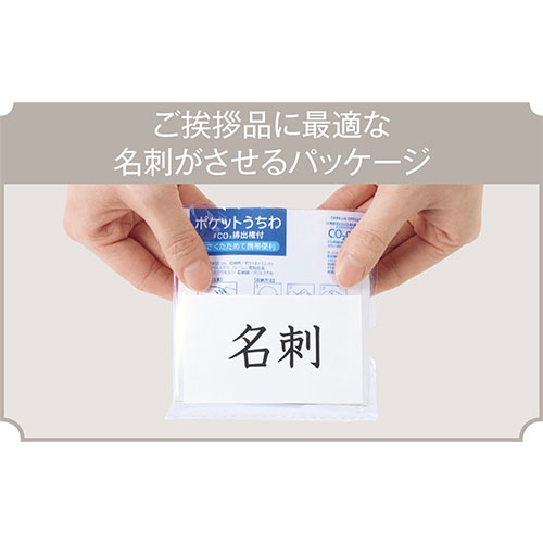 カーボンオフセットに貢献できるエコな丸うちわ。ひねってコンパクトに収納でき、持ち運びも便利です。名刺ポケット付きで、名入れも可能。春夏のイベント配布やご挨拶に最適です。