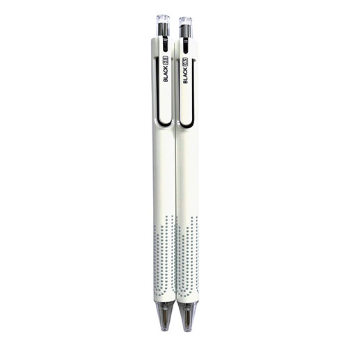 静かなノック音で周囲を気にせず使える油性ボールペン2本組。ボール径は0.5mmです。会議や図書館など、音の気になる場所での筆記に最適。ビジネスノベルティにも重宝する一品です。