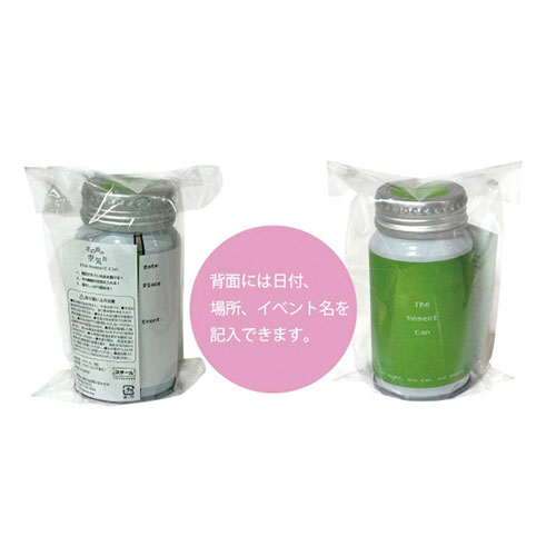 大切な瞬間の空気を閉じ込めて持ち帰れるメモリアル缶。イベントの空気感を封じ込め、日付を記して保管できます。思い出を形に残し、後からデコレーションも楽しめる一品。
