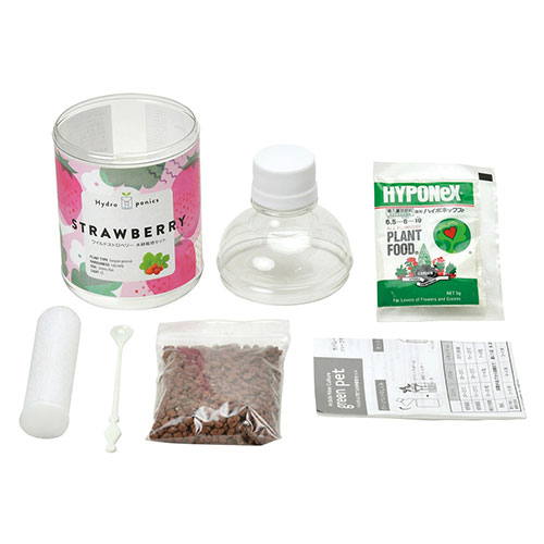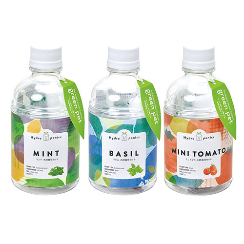 土を使わないペットボトル型の底面給水栽培セット。セラミックボールを使った水耕栽培で、必要な分だけ水を吸い上げます。水やりの時期も一目で分かり水を溜めるだけで育てられる便利なキット。