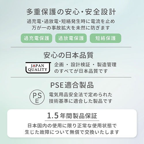急速充電対応の10000mAh薄型モデル。最大15WのType-Cと『かしこく充電』対応ポートで3台同時充電が可能です。1.5年保証を備えたPSE適合の安心設計です。
