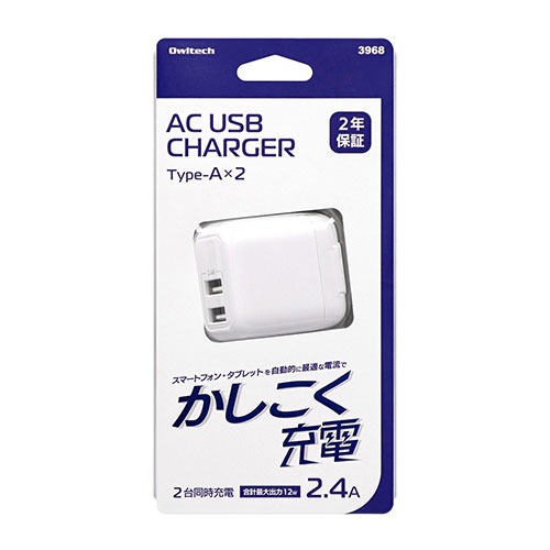 オウルテック 最大12W出力 USB Type-A×2 AC充電器